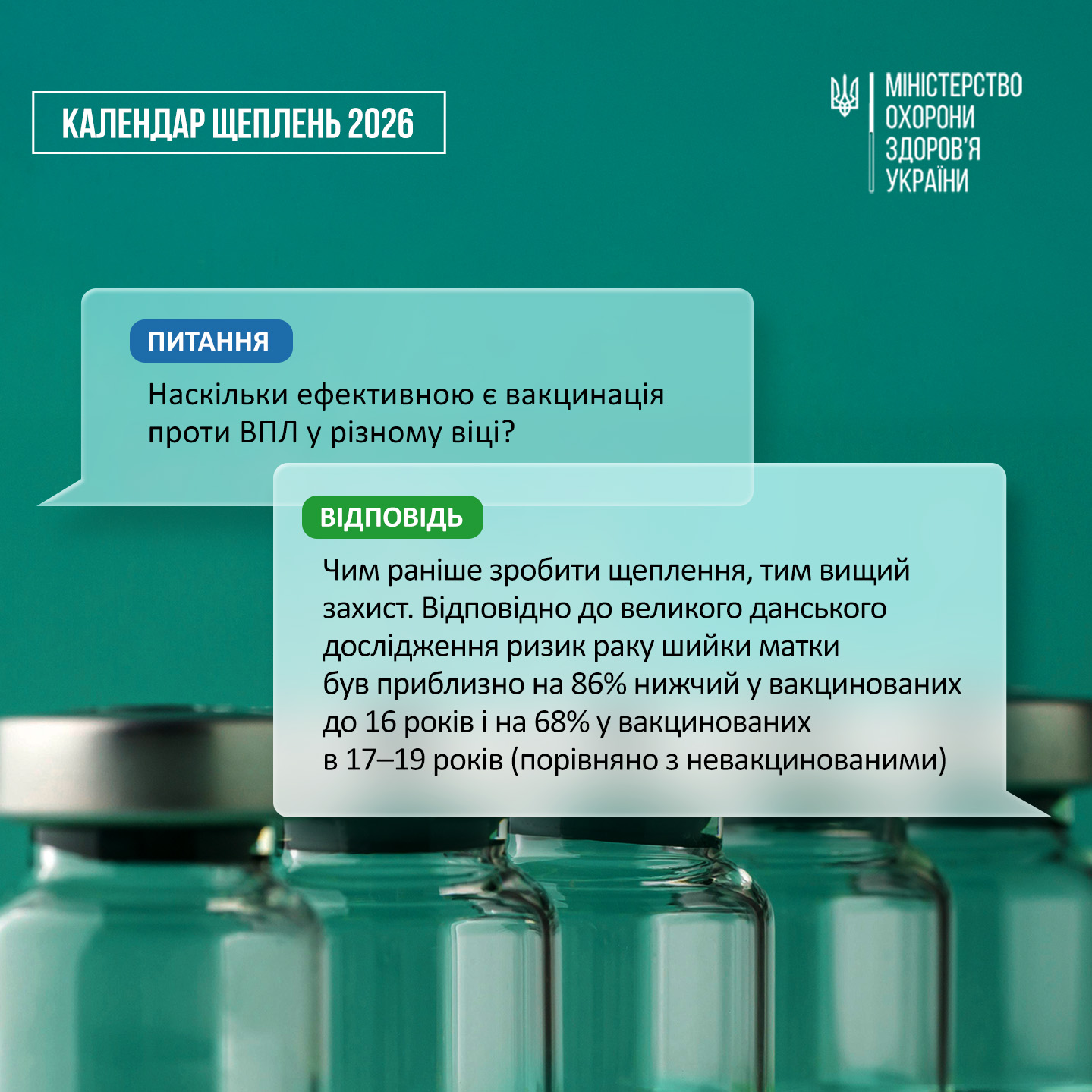 матки знижується на ~86 %, якщо вакцинацію проведено до 16 років, і на ~68 %, якщо вакцинацію