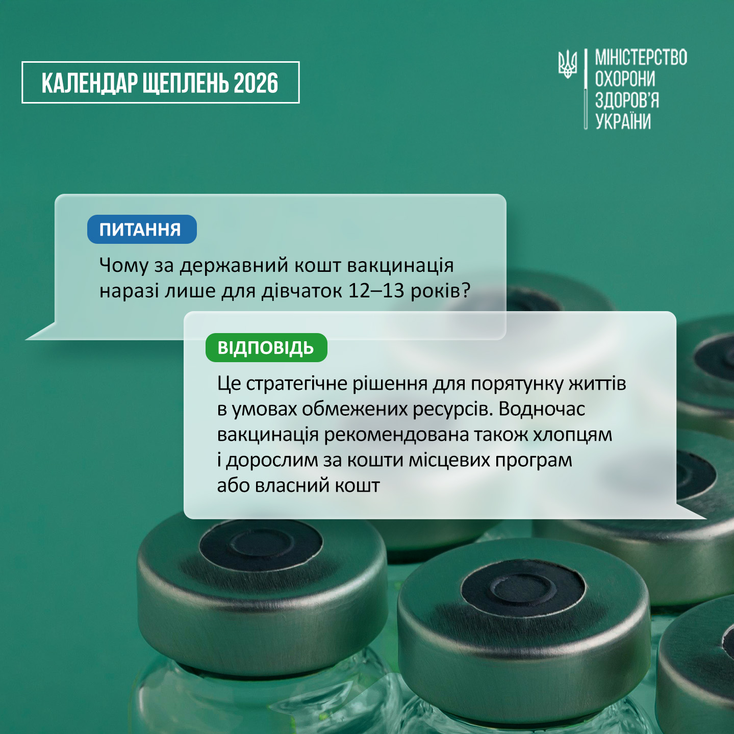 ❓Чому за державний кошт вакцинація наразі лише для дівчаток 12–13 років?